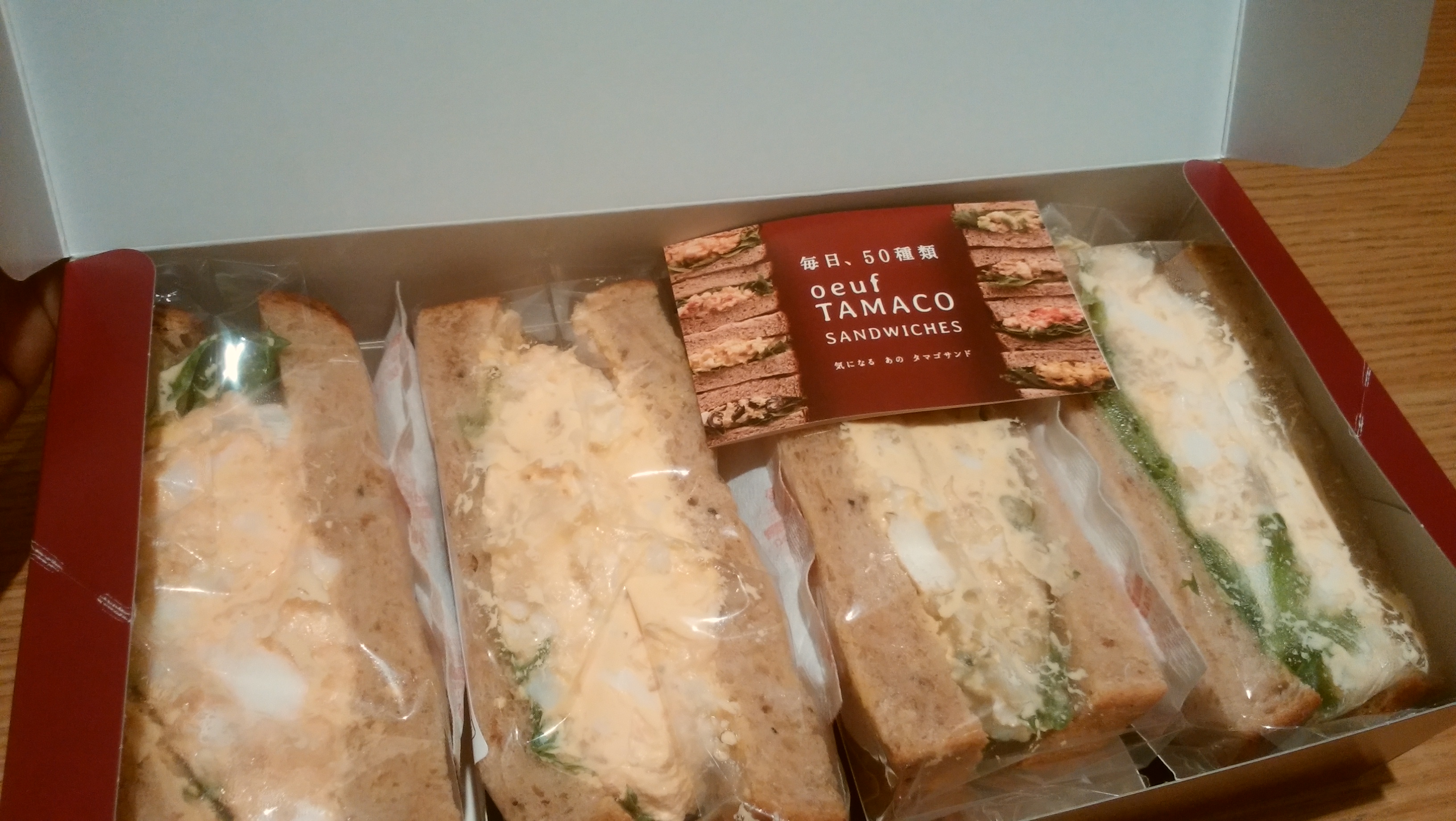 特製のたまごフィリングを使用しており、たまごプラス明太子、とかたまごプラスツナ、とかたまごサンドにこんなにバリエーションつけられるんだってくらい種類があって(毎日50種類あるらしい。行った時は2割くらい売り切れていたけど。)